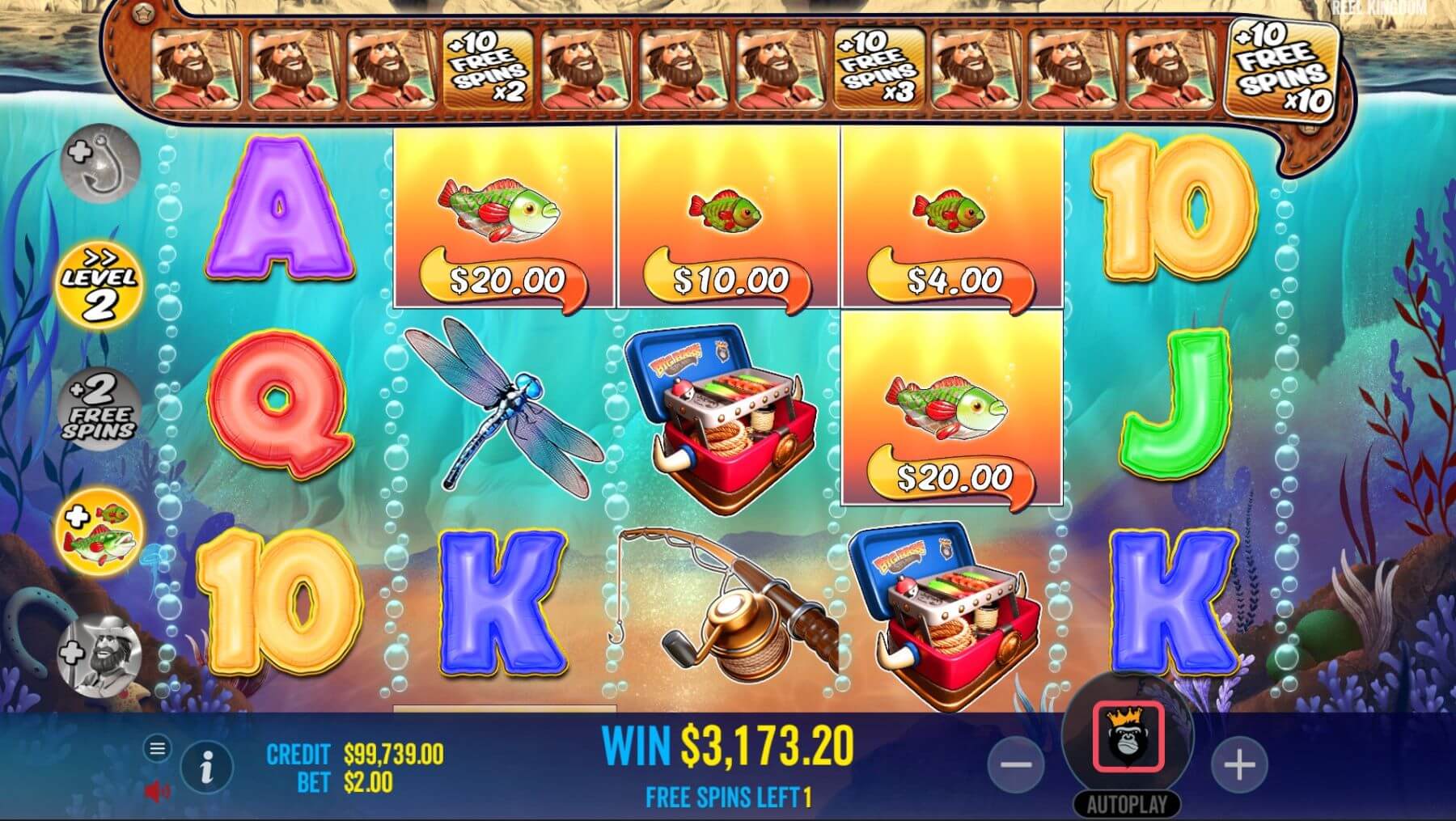 Normal Free Rotates: The Angler sign is contributed to the reels as a wild sign throughout the cost-free spin round. He will certainly additionally accumulate all the values from money symbols on the display. Each angler symbol is collected at the top of the display, and every fourth angler will add +10 complimentary spin and raise the multiplier degree. The initial increase is to 2x, the second to 3x and the 3rd and final time is 10x.